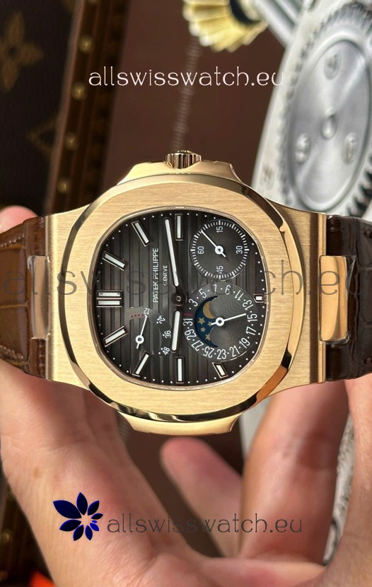 You're reviewing: Patek Philippe Nautilus 5712/R 1:1 Quality Swiss Replica Watch in Grey Dial Leather Strap