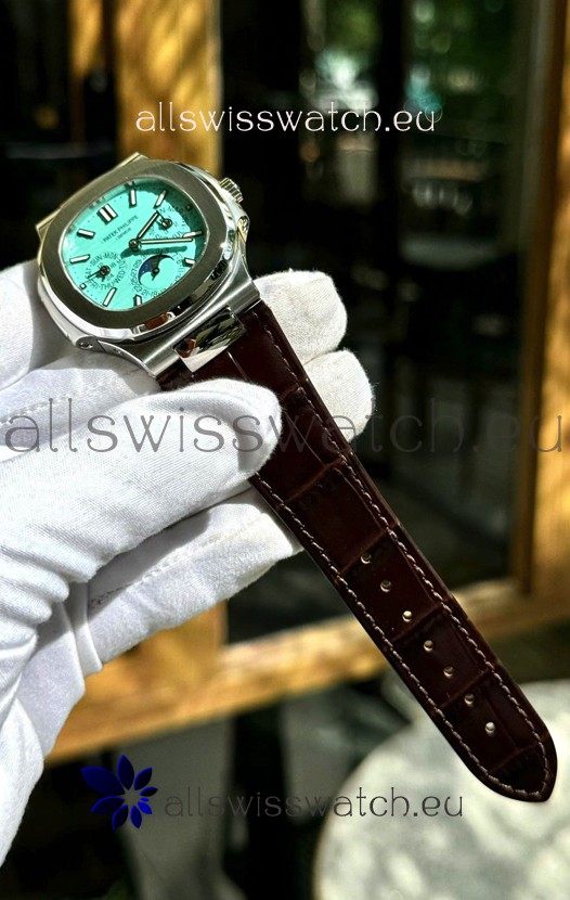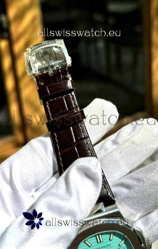 Genuine Leather Strap with Double Fold Stainlless Steel Clasps with Patek Philippe Markings/Engravings