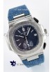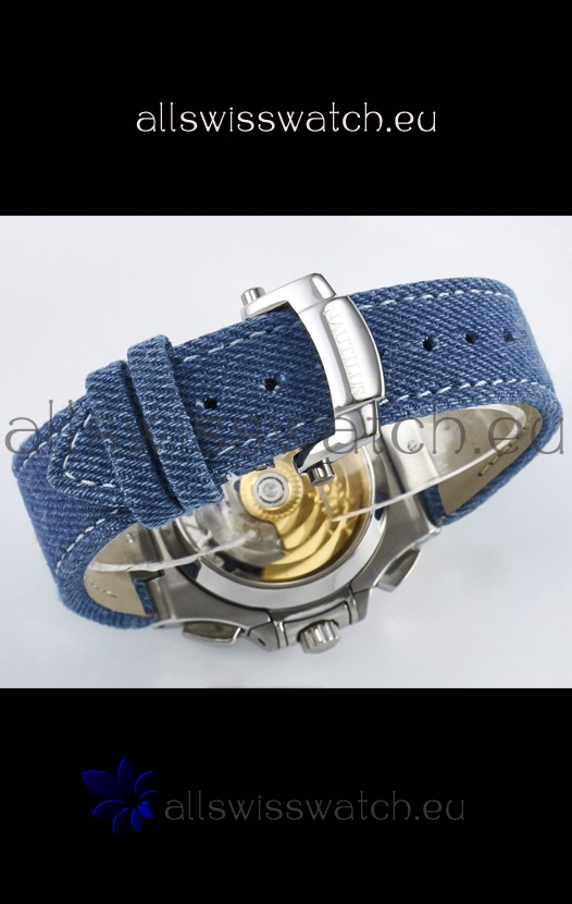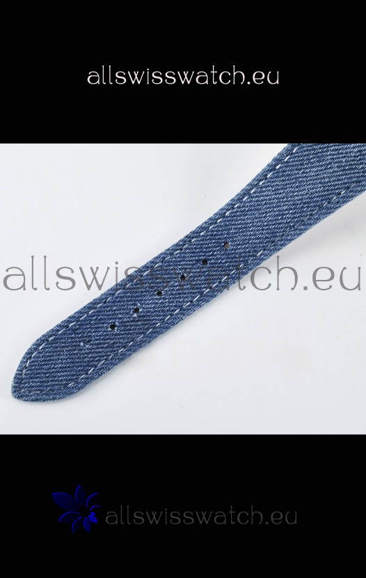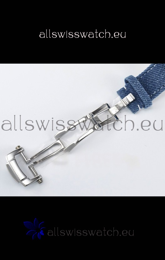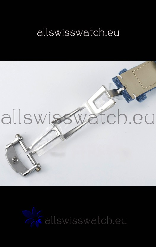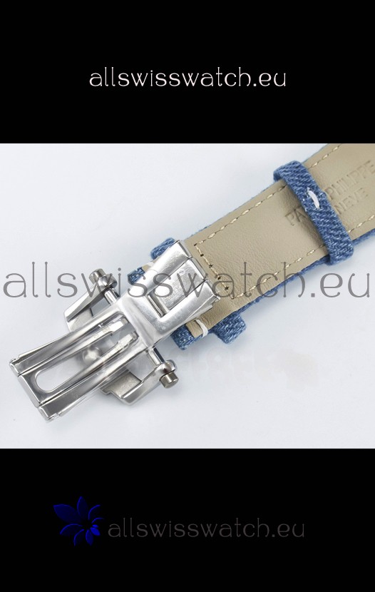 Genuine Fabric/Leather Hybrid Strap in Blue with Double Fold Stainlless Steel Clasps with Patek Philippe Markings/Engravings