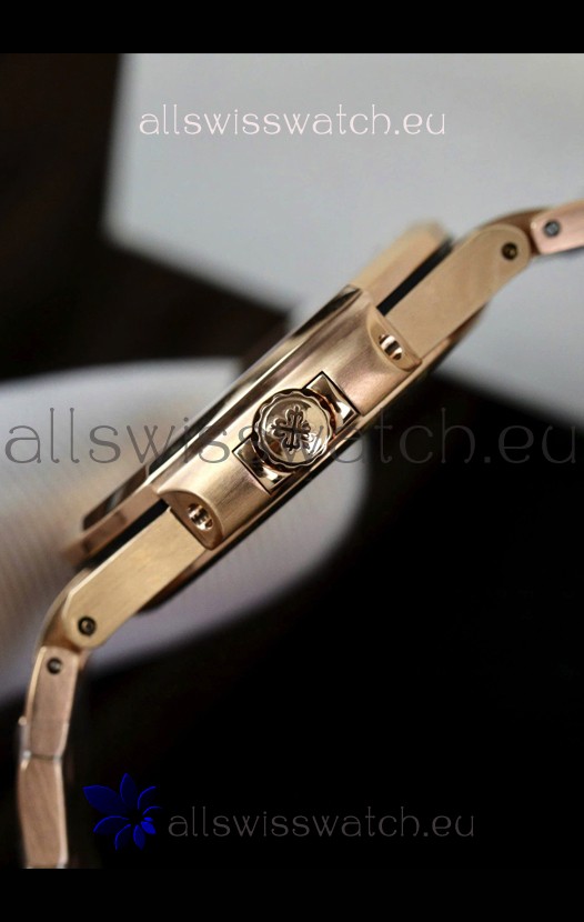 Rose Gold Plating on 904L Stainless Steel Strap with Steel Folding Clasp complete with Patek Philippe Markings.
