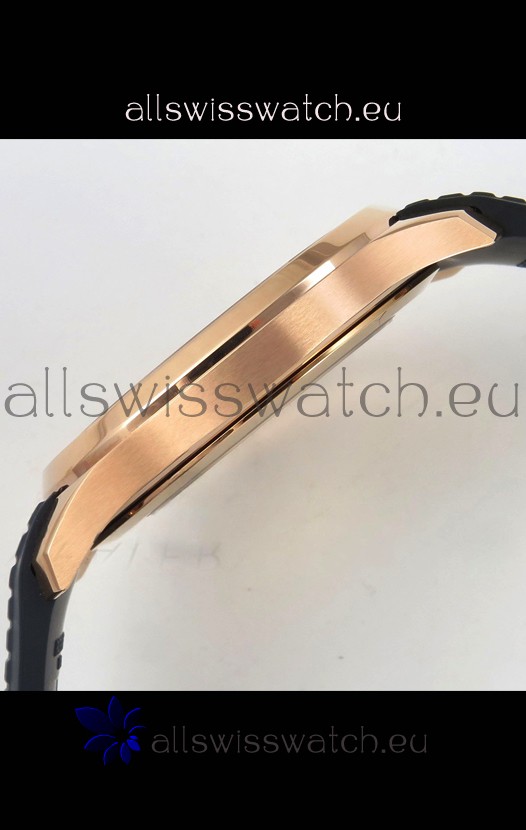 Rose Gold Plating on 904L Polished Stainless Steel Case with Brushed Bezel exactly as per the original