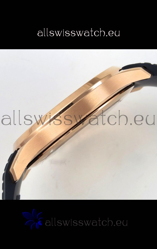 Rose Gold Plating on 904L Polished Stainless Steel Case with Brushed Bezel exactly as per the original