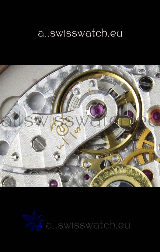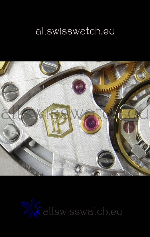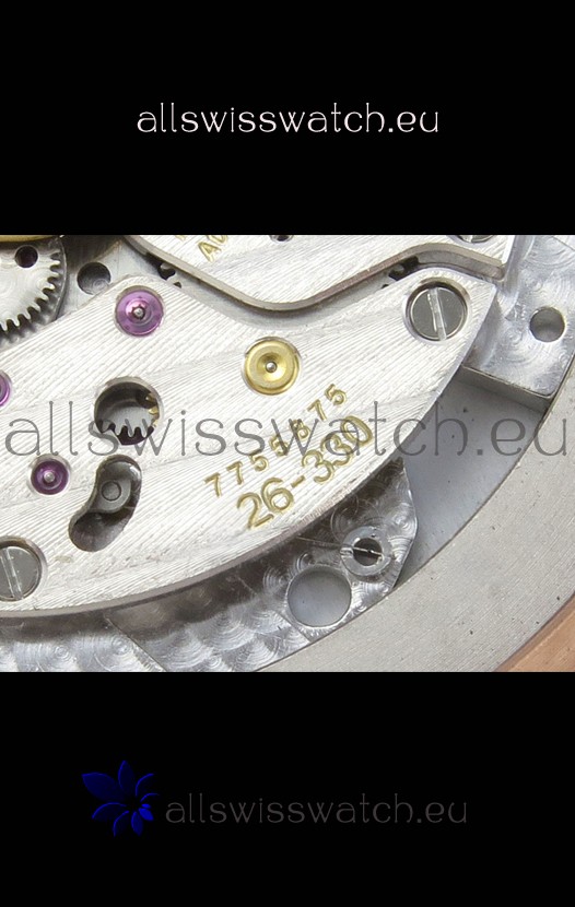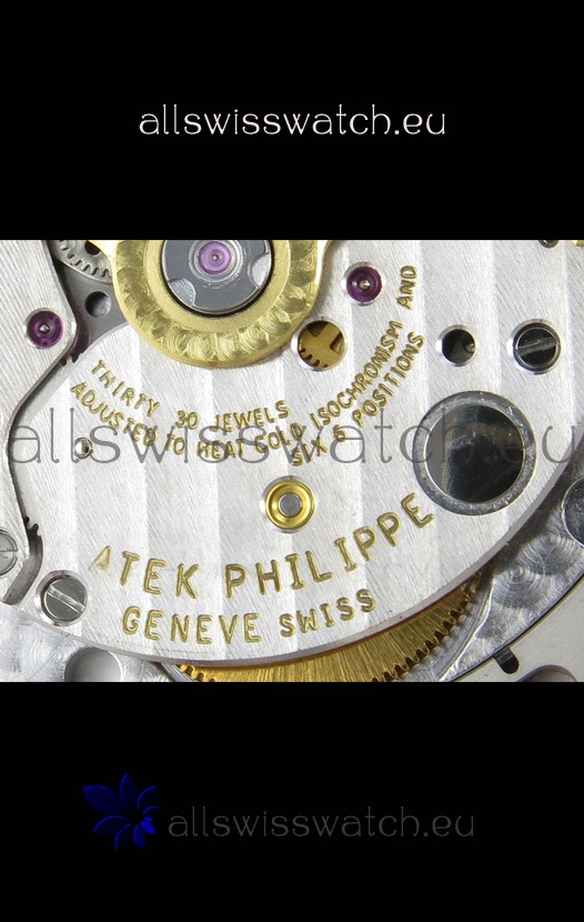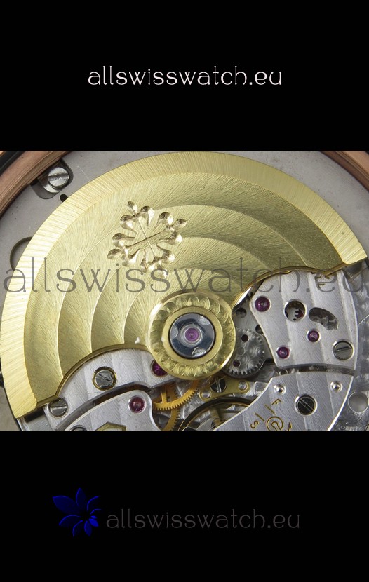 Genuine Swiss 9015 Movement assembled to Resemble the Authentic Patek Philippe PP 330 CS Calibre Style Movement. Updated Rotor, Bridged and Engravings on Movement.