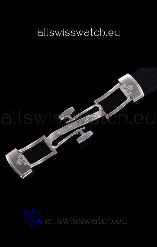 New Style Curved Rubber Strap with Steel Folding Clasp complete with Patek Philippe Markings.
