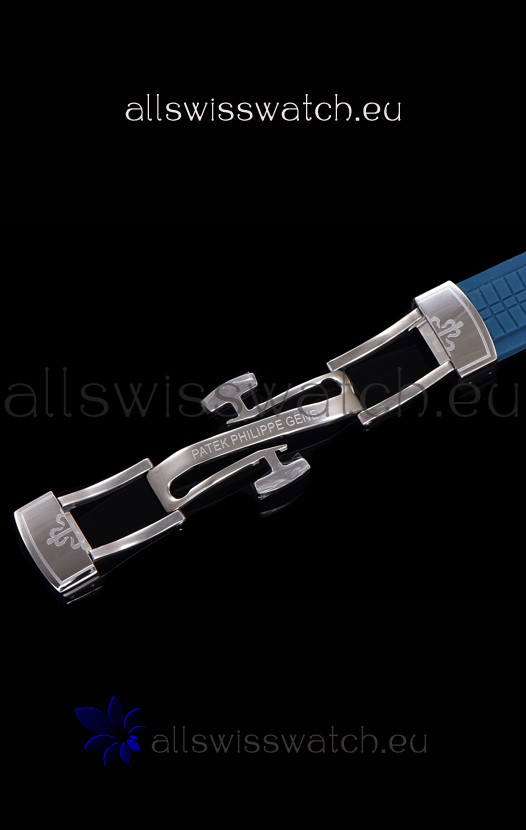 New Style Curved Rubber Strap with Steel Folding Clasp complete with Patek Philippe Markings.