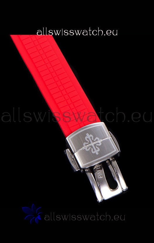 New Style Curved Rubber Strap with Steel Folding Clasp complete with Patek Philippe Markings.