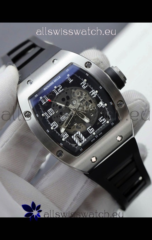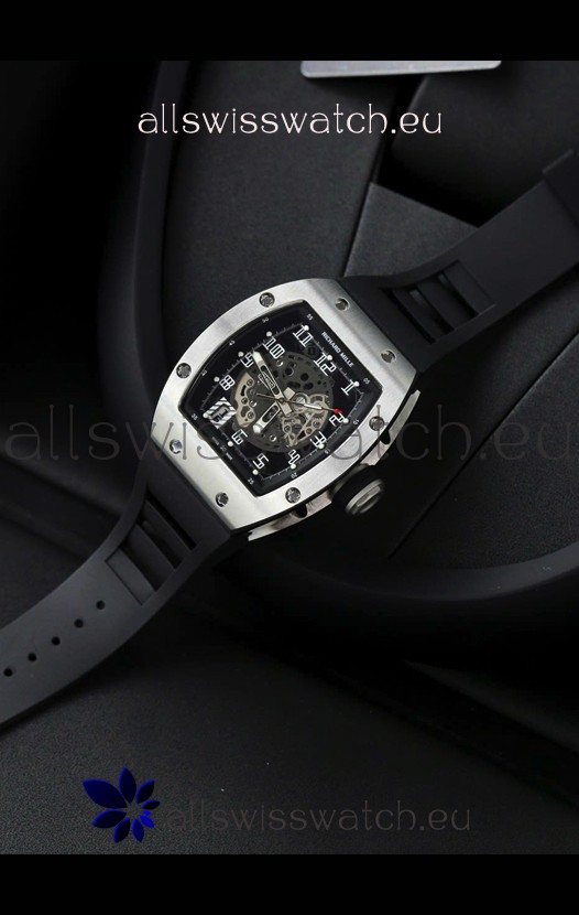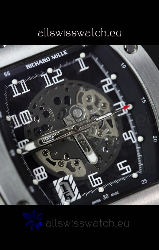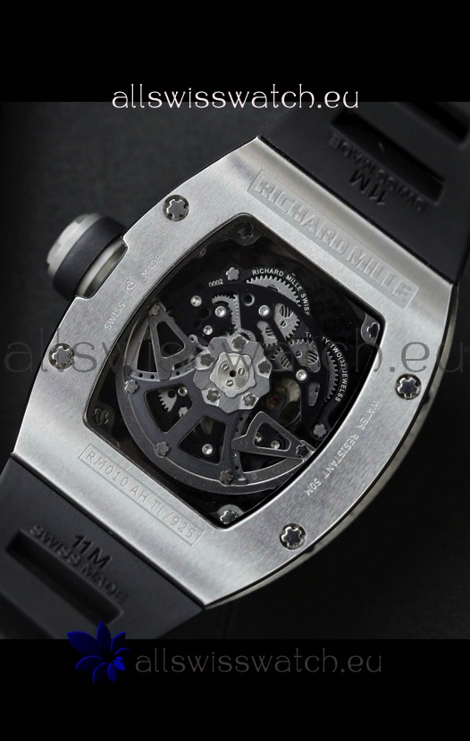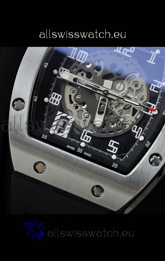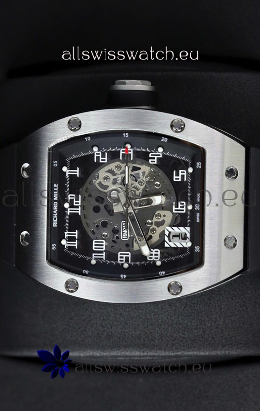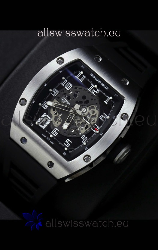 Richard Mille RM010 Stainless Steel Replica Watch in Black Strap