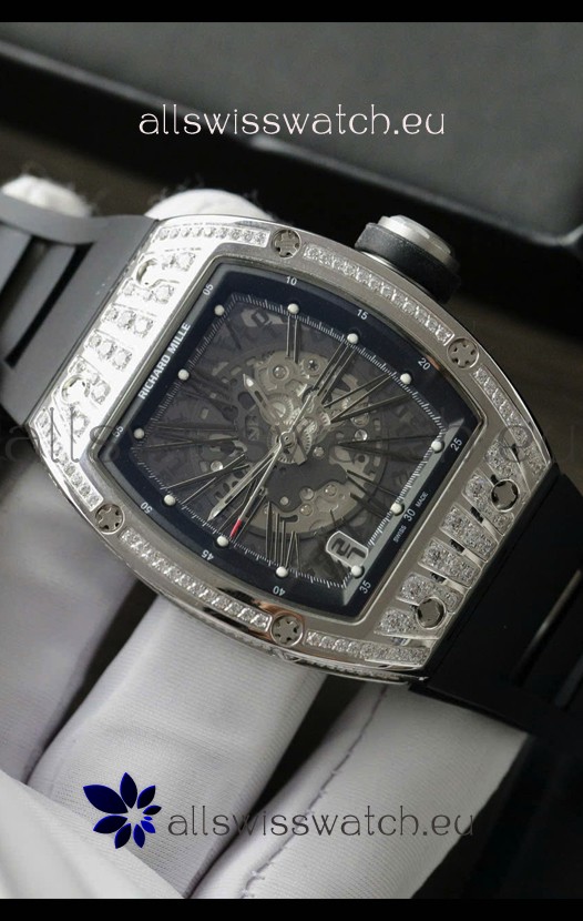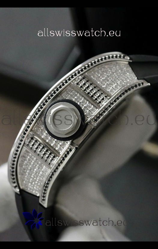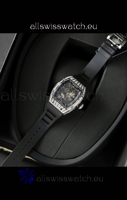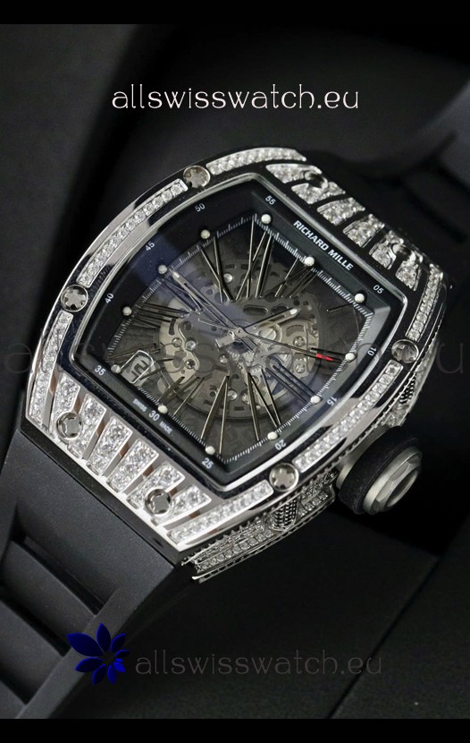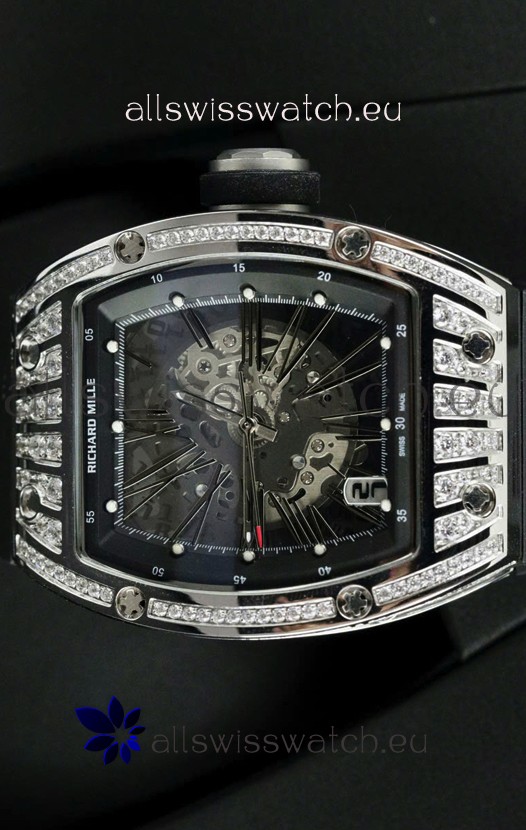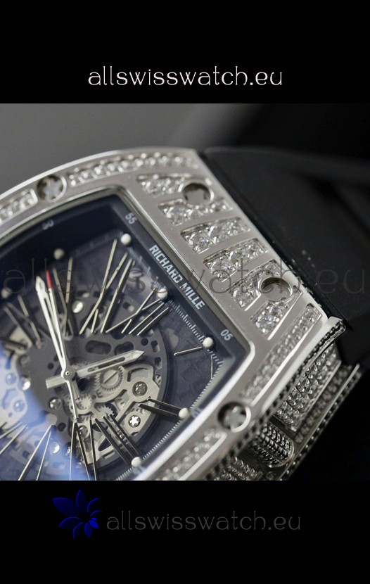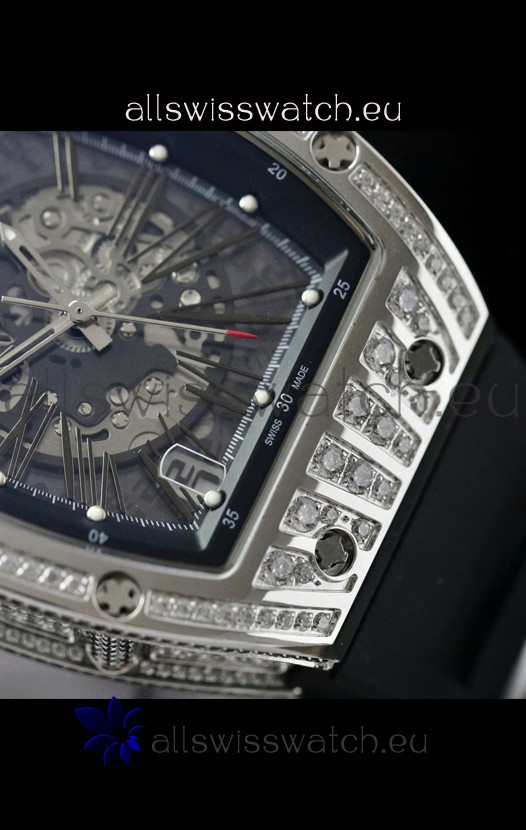 Skeleton Dial with machinery lineup exactly as per the originals. Diamonds Embedded Beel