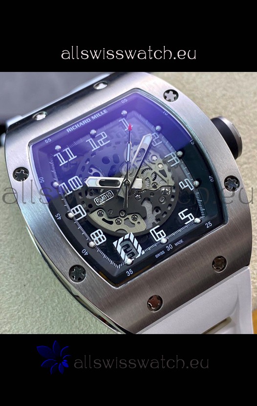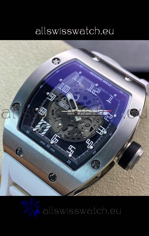 Richard Mille RM010 Stainless Steel Replica Watch in White Strap