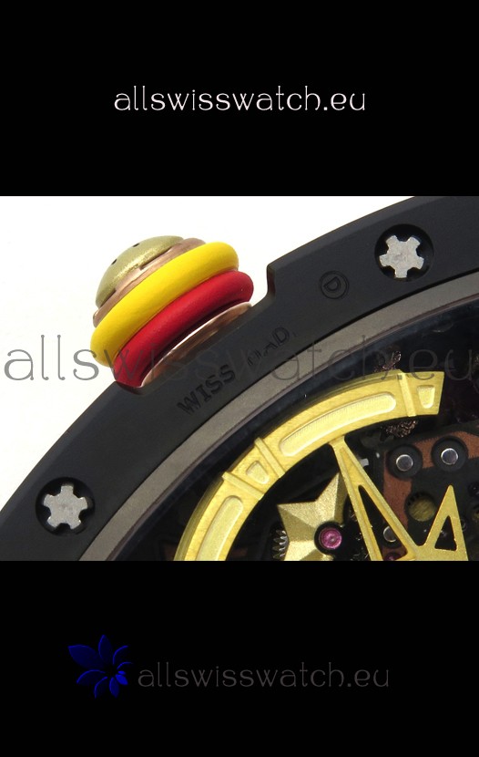 Anti Reflective Scratch Proof Sapphire Front Crystals. Solid Case back complete with Richard Mille Markings/Engravings