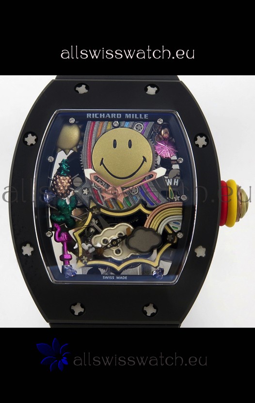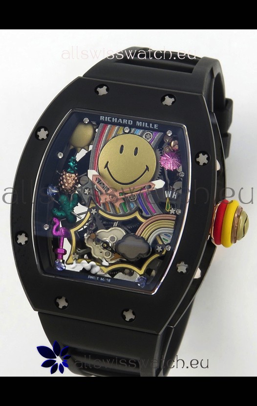 You're reviewing: Richard Mille Super Clone RM088 Smiley Tourbillon Black Ceramic Rubber Strap Watch