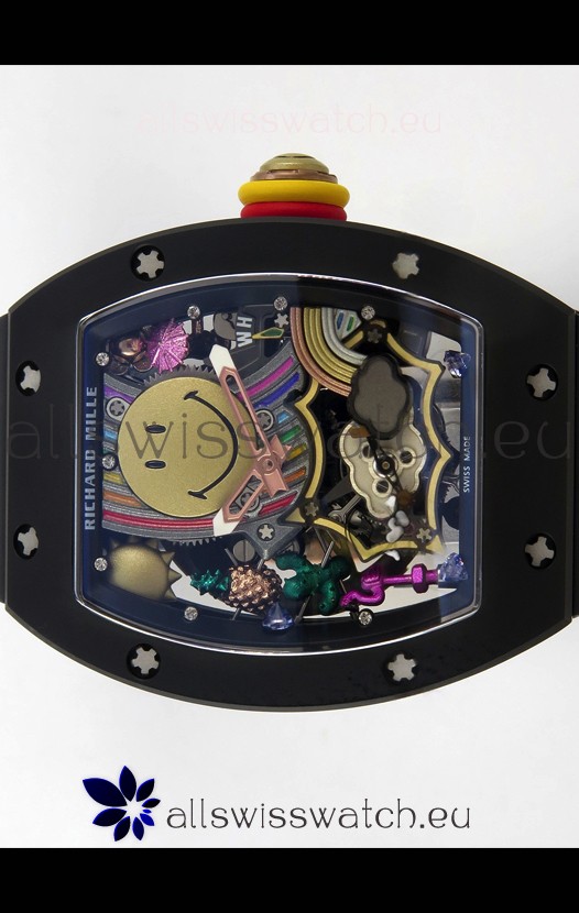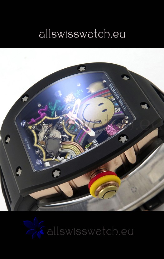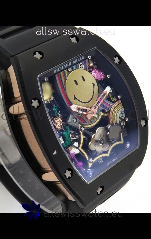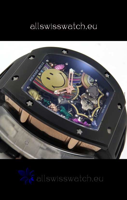 Richard Mille Super Clone RM088 Smiley Tourbillon Black Ceramic Rubber Strap Watch