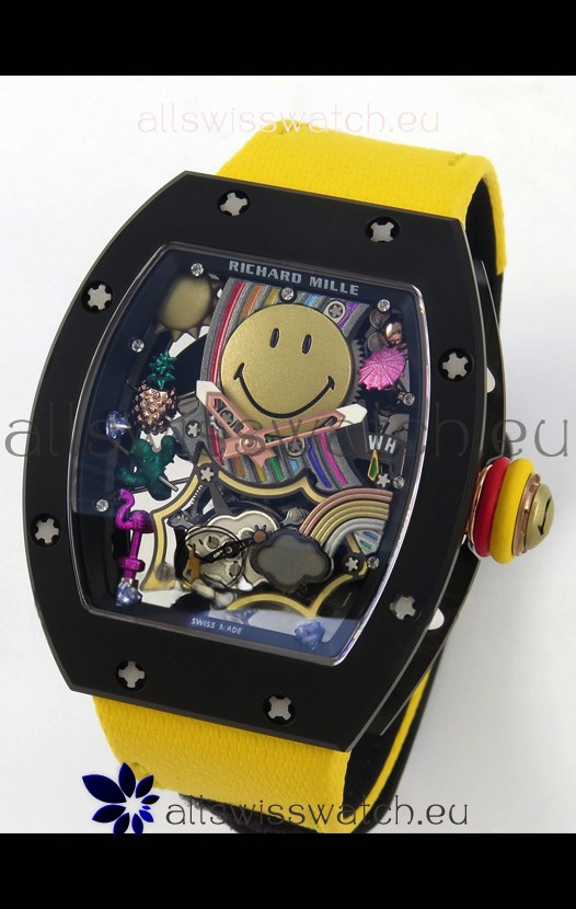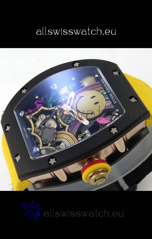 You're reviewing: Richard Mille Super Clone RM088 Smiley Tourbillon Black Ceramic Velcro Strap Watch