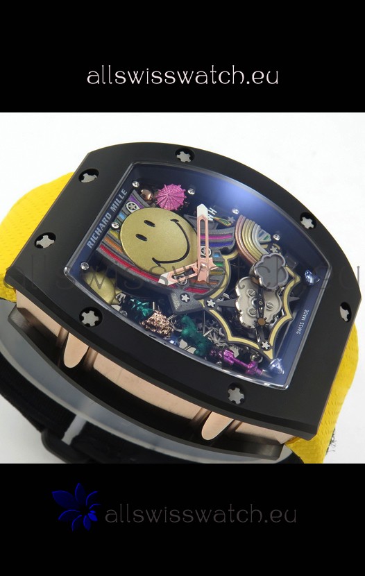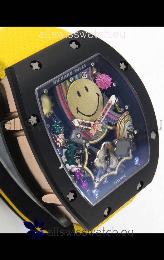 Richard Mille Super Clone RM088 Smiley Tourbillon Black Ceramic Velcro Strap Watch