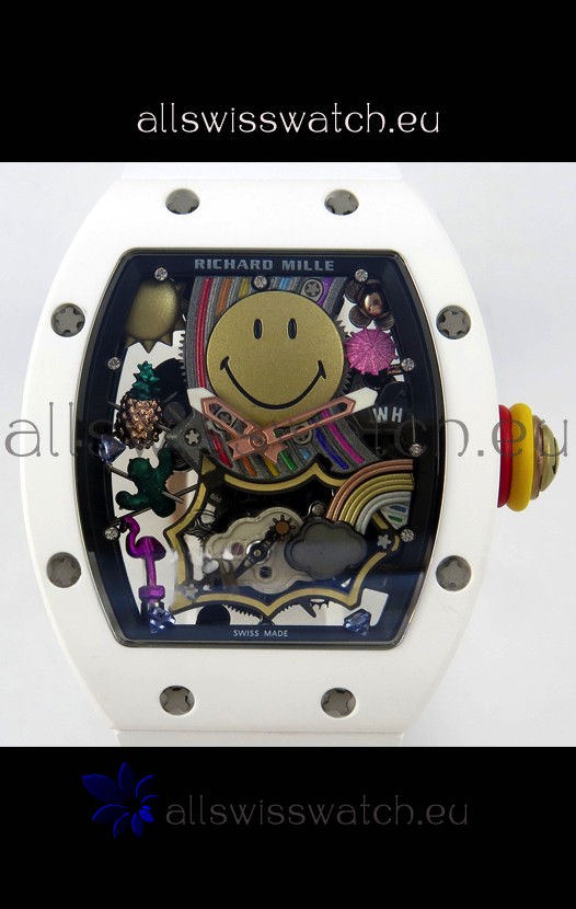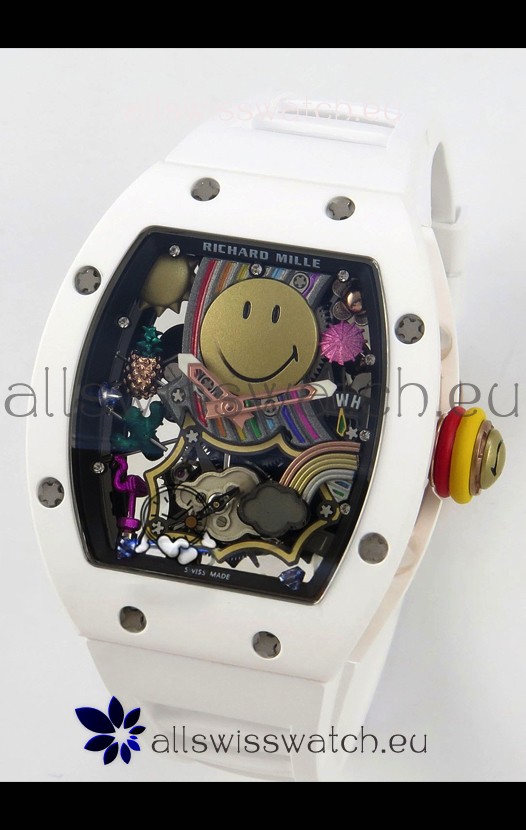 You're reviewing: Richard Mille Super Clone RM088 Smiley Tourbillon White Ceramic Rubber Strap Watch