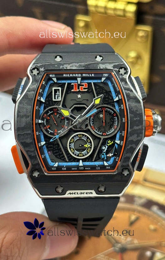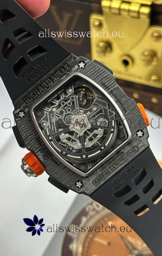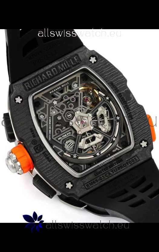Richard Mille Super Clone RM65-01 Carbon Casing Replica Watch in Black Strap