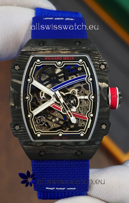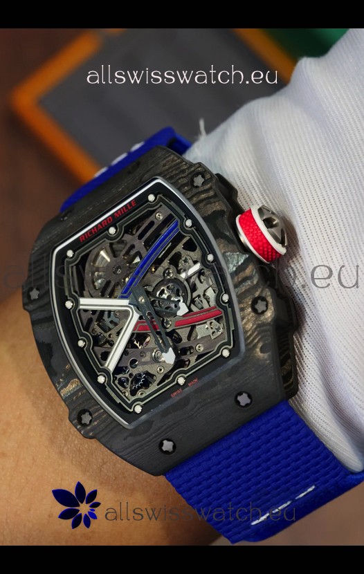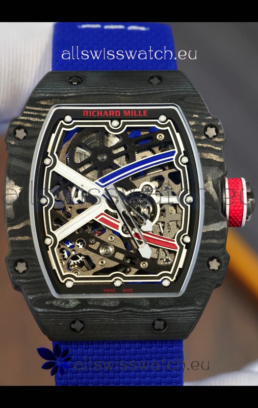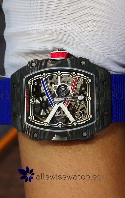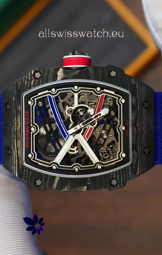You're reviewing: Richard Mille Super Clone RM67-02 Sebastien Ogier Black Carbon TPT 37 Grams Watch Blue Strap
