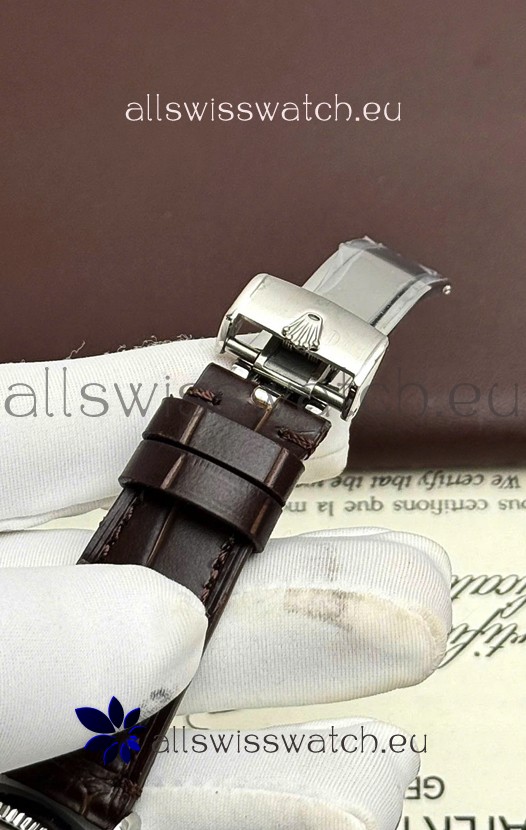 Genuine Brown Leather Strap with Stainless Steel Deployant Clasps
