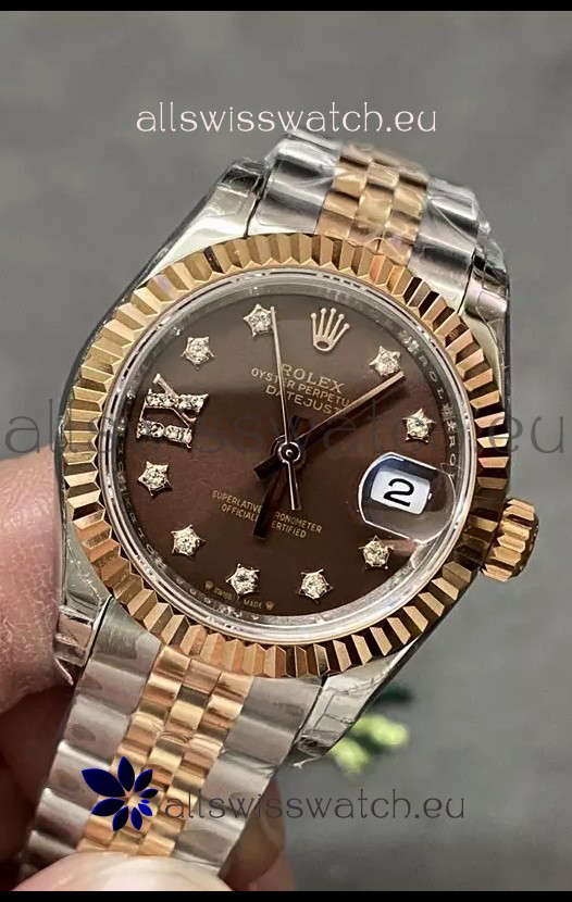 Rolex Datejust Super Clone Brown Dial Rose Gold Steel Watch 28MM