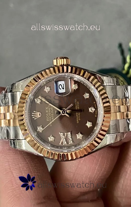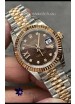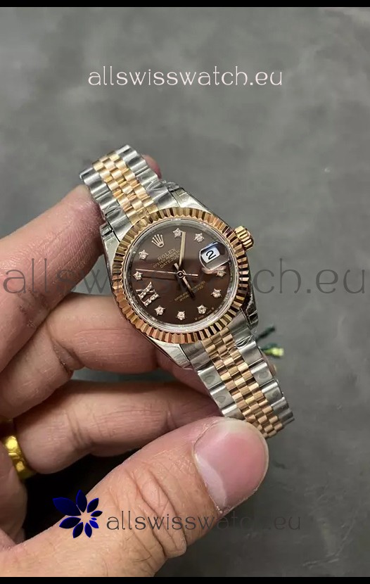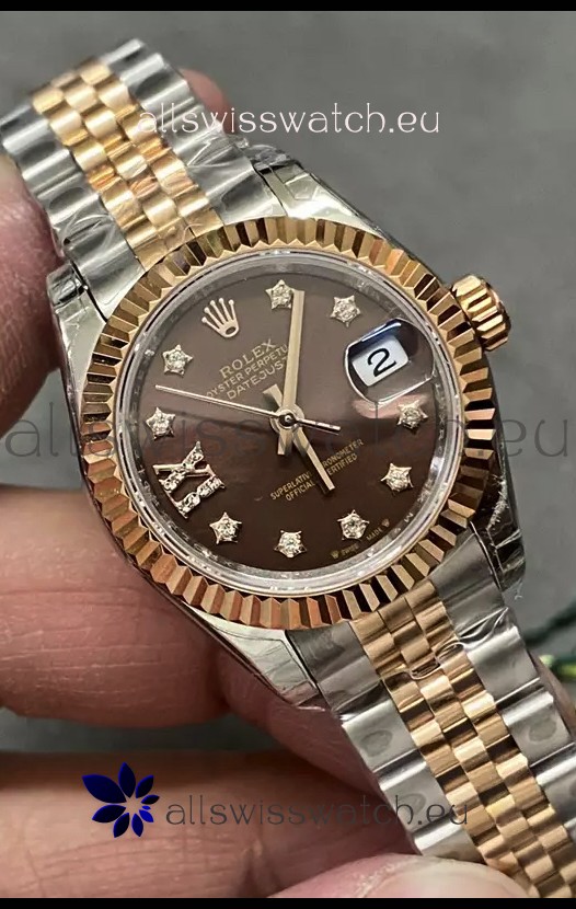 Rolex Datejust Super Clone Brown Dial 2 Tone Rose Gold Watch 28MM