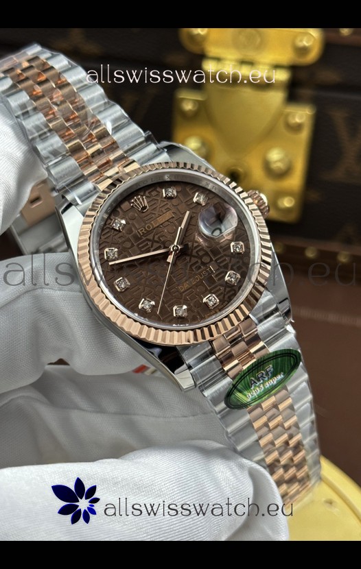 Rolex Datejust Super Clone Cal.3235 Brown Computer Dial 2 Tone Rose Gold Casing Watch 36MM