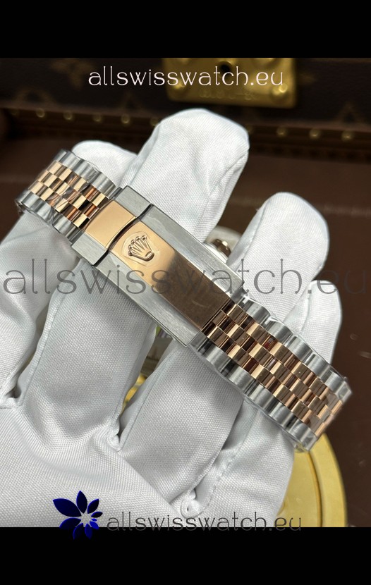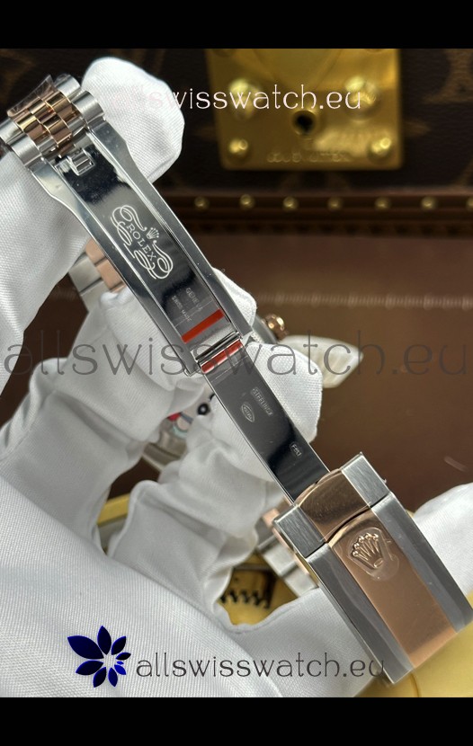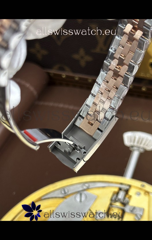 18K Rose Gold Plating Two Tone 904L Stainless Steel Two Tone Strap with New Style Rolesor Deployant Buckle, End links match up Flush with the Case. - A Much Improved Datejust Strap Version