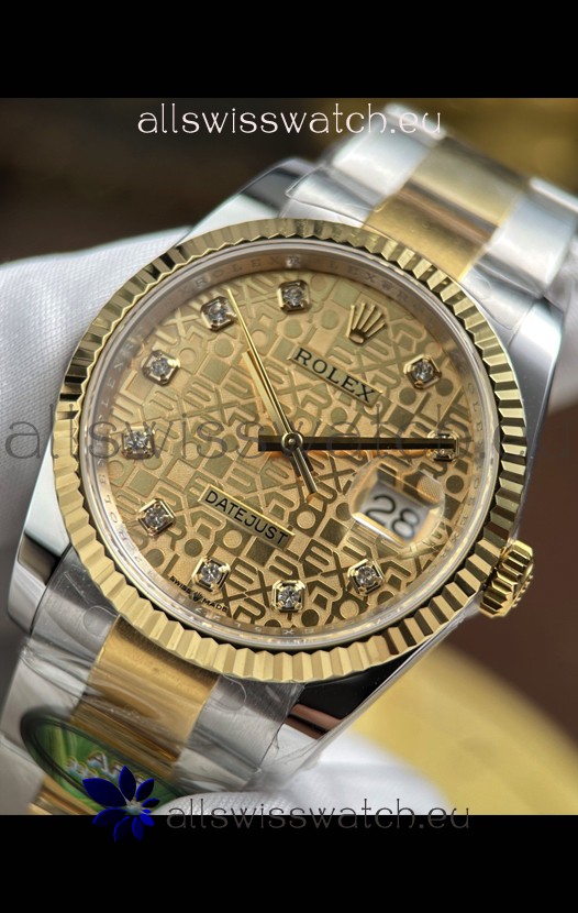 18K Yellow Gold Plating Two Tone 904L Stainless Steel Two Tone Polished Case with Bezel as per the original.