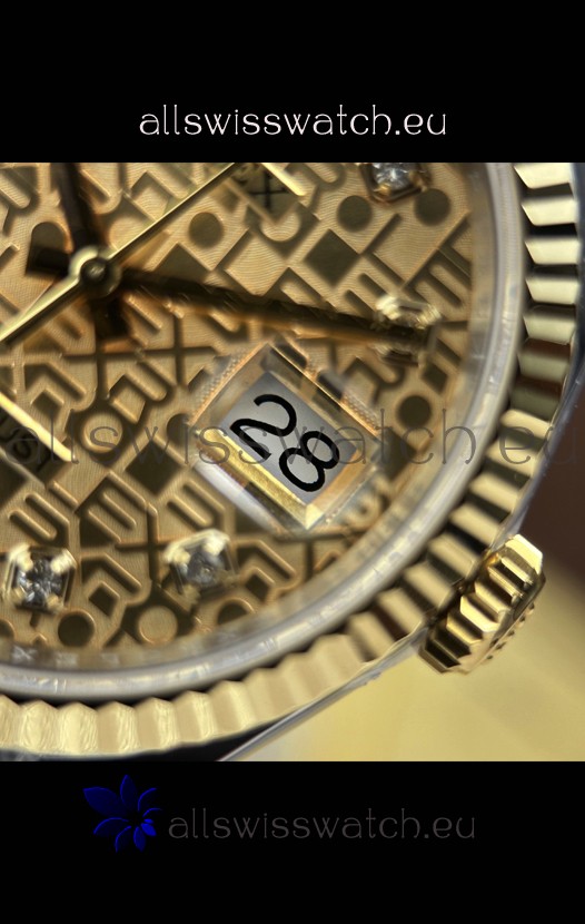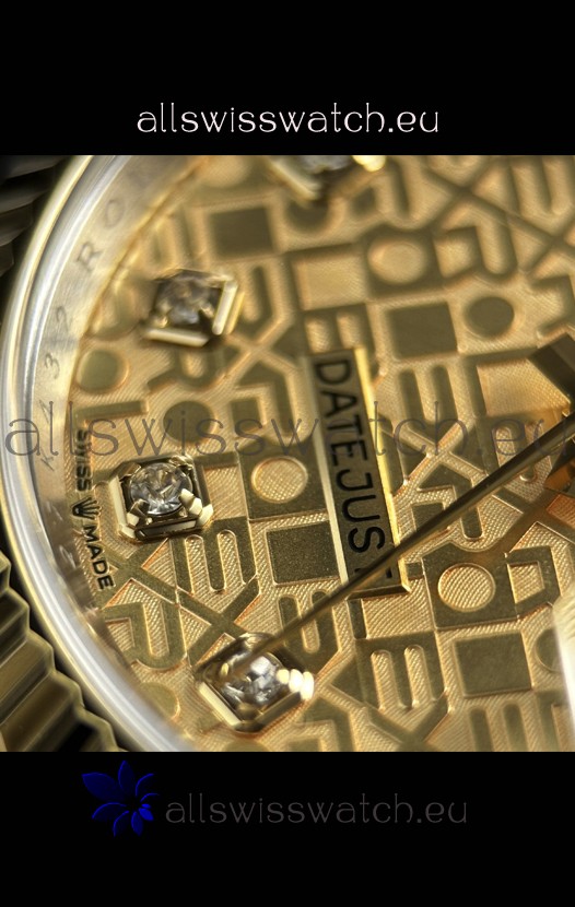 Gold Computer Dial with Diamonds Hour Numerals and Date Indicator