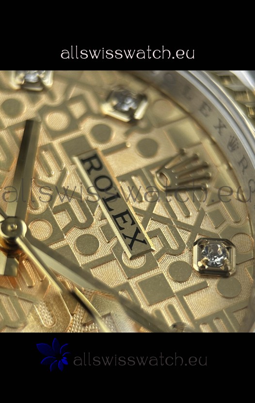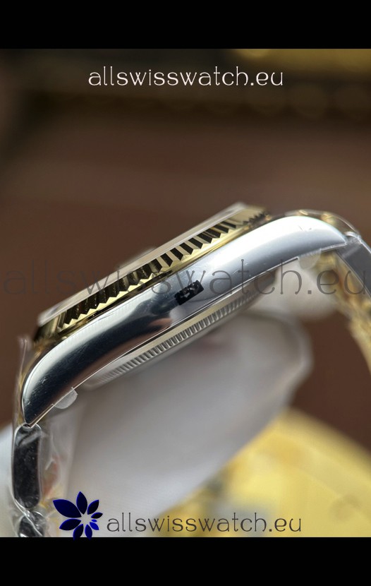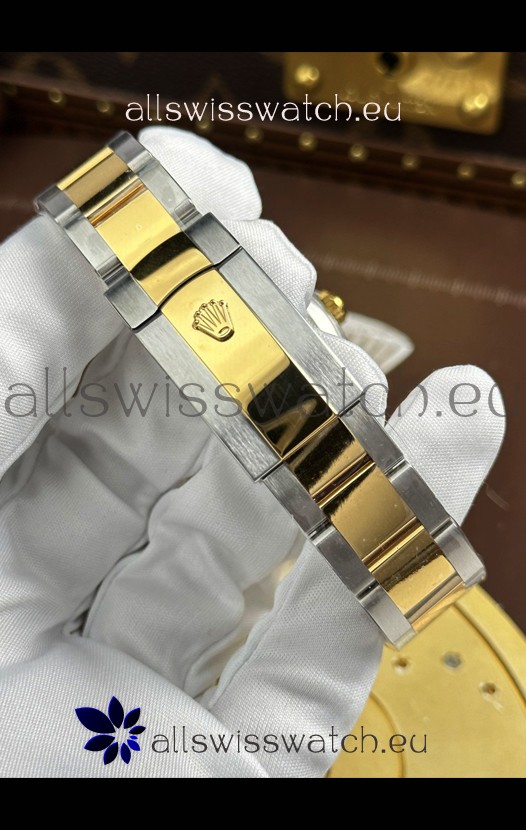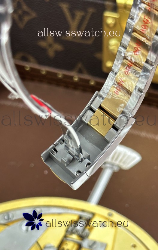 18K Yellow Gold Plating Two Tone 904L Stainless Steel Two Tone Strap with New Style Rolesor Deployant Buckle, End links match up Flush with the Case. - A Much Improved Datejust Strap Version