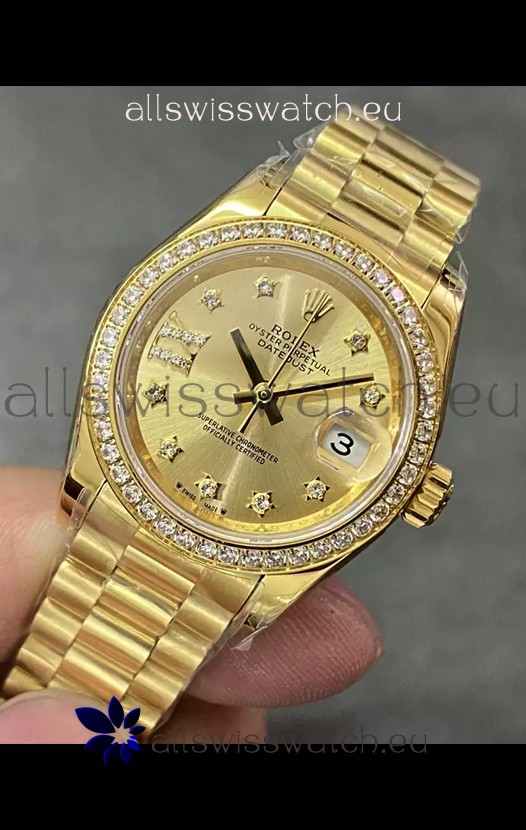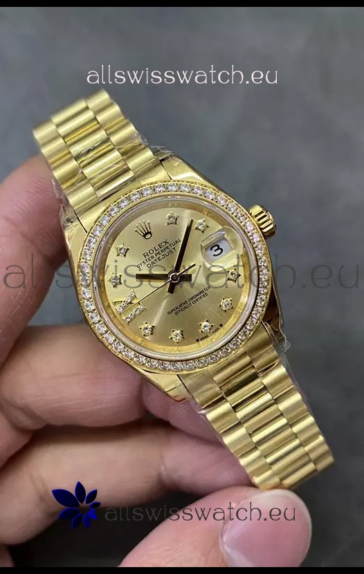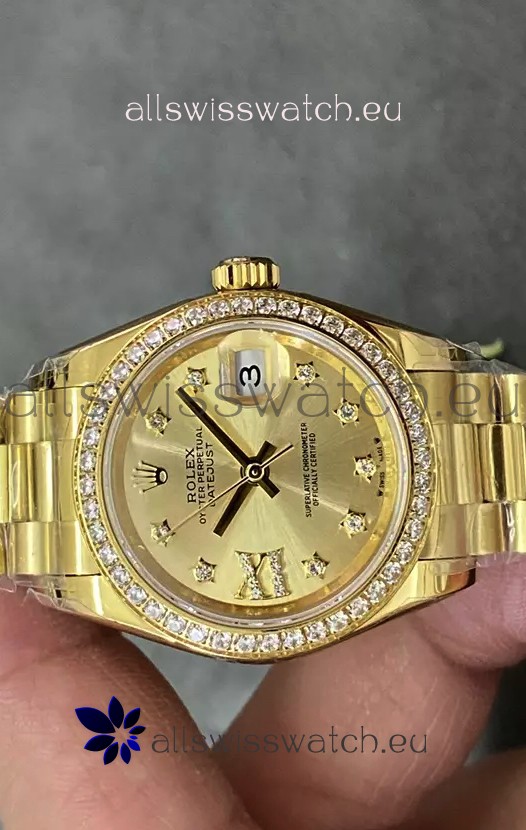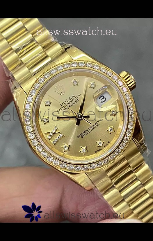 Rolex Datejust Super Clone Gold Dial Yellow Gold Casing Watch 28MM
