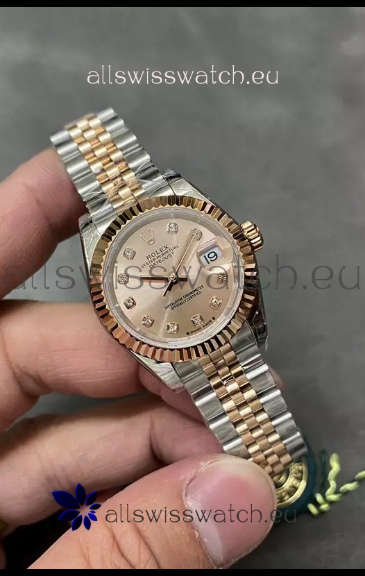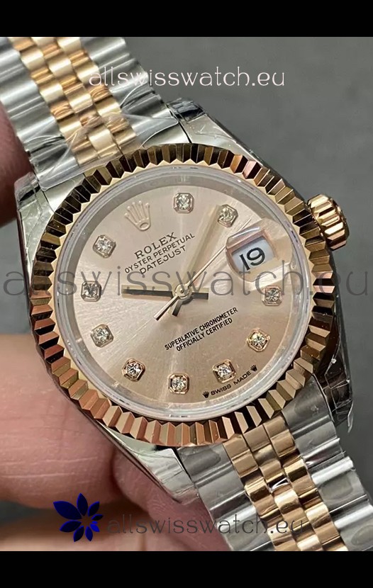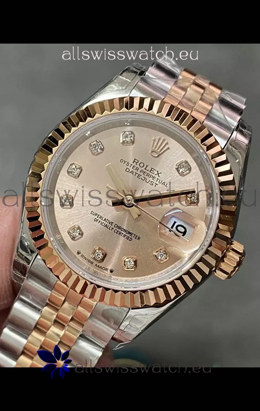 Rolex Datejust Super Clone Green Dial 2 Tone Rose Gold - Gold Dial Watch 28MM