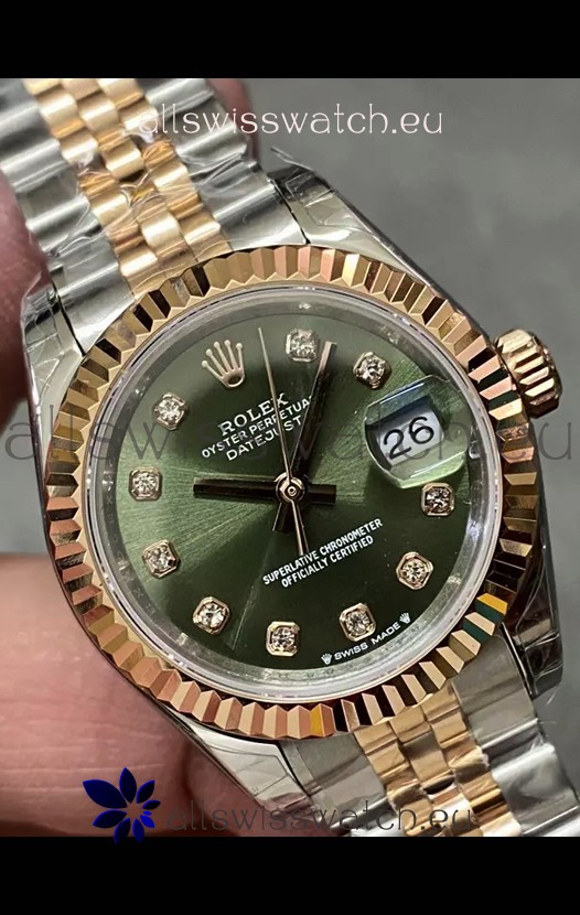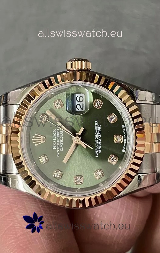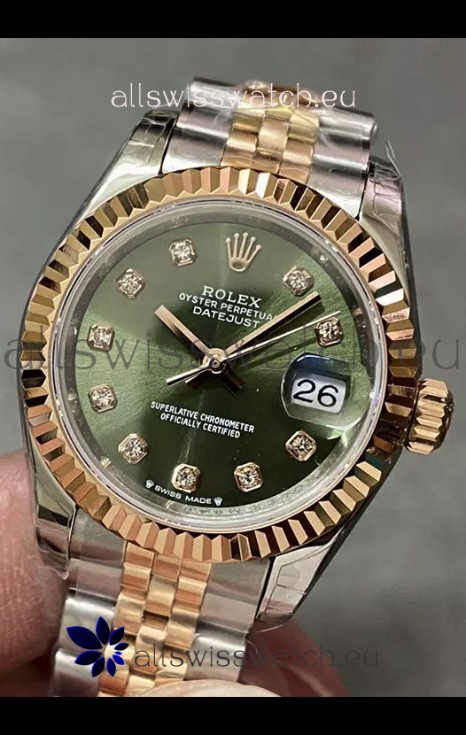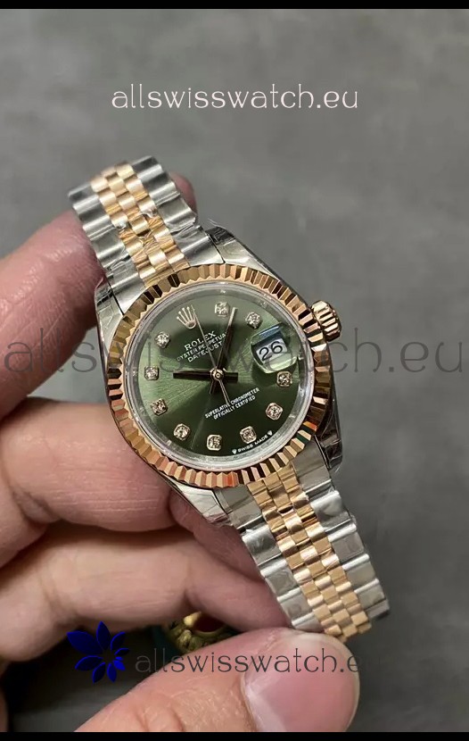 Rolex Datejust Super Clone Green Dial 2 Tone Rose Gold Watch 28MM