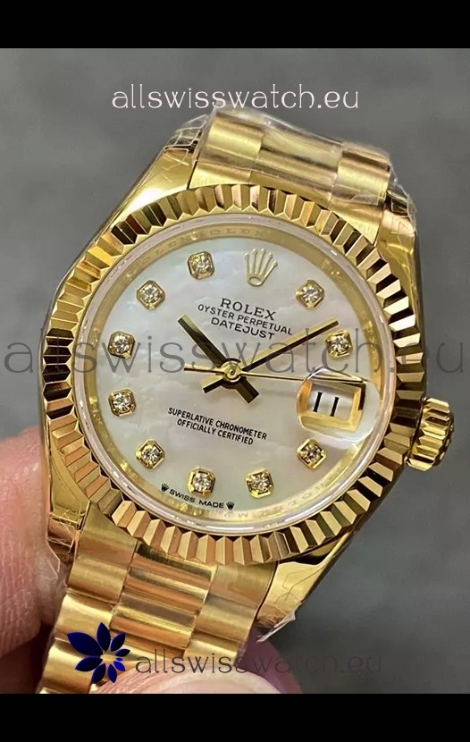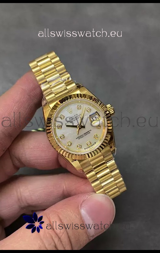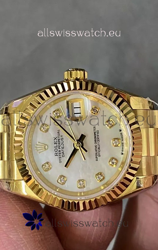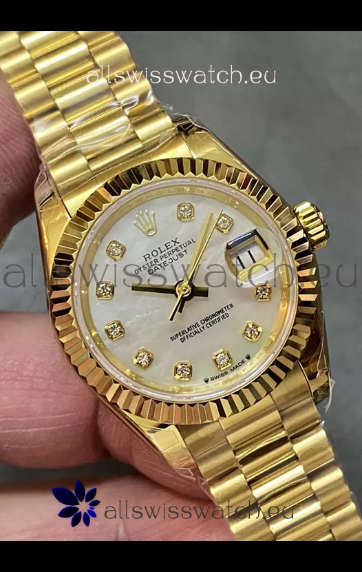 Rolex Datejust Super Clone Pearl Dial Yellow Gold Casing Watch 28MM