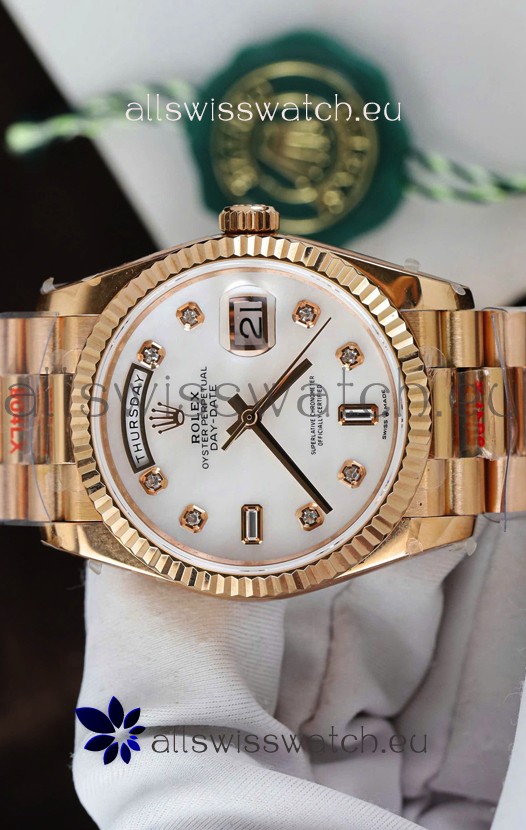 You're reviewing: Rolex Day Date Presidential 18K Rose Gold Watch 40MM - Pearl Dial 1:1 Mirror Quality