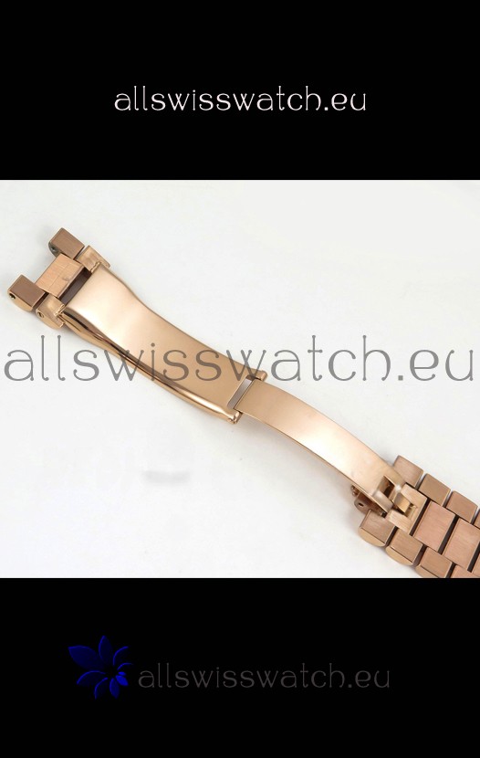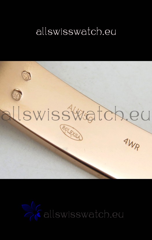 18K Rose Gold Plating on 904L Stainless Steel New Design President Strap with Folding Clasps complete with Rolex Markings and Engravings