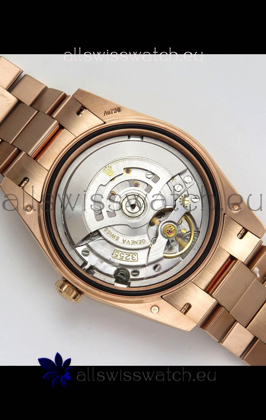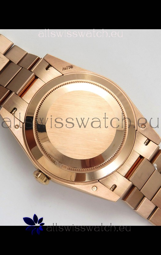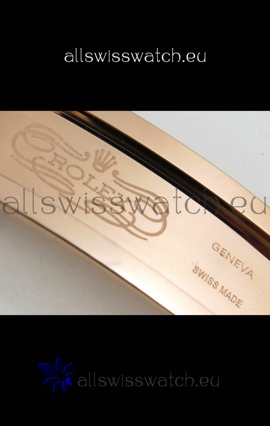 18K Rose Gold Plating on 904L Steel Case complete with all Rolex Markings and Engravings as per the Originals
