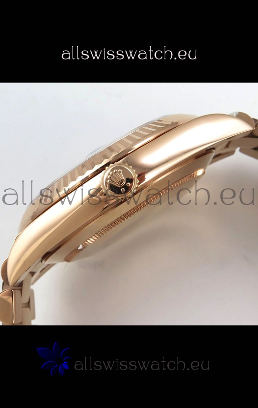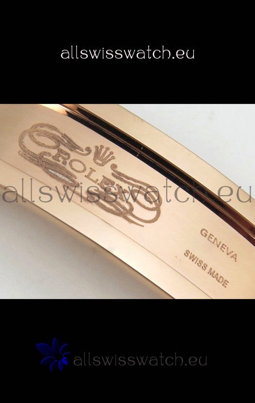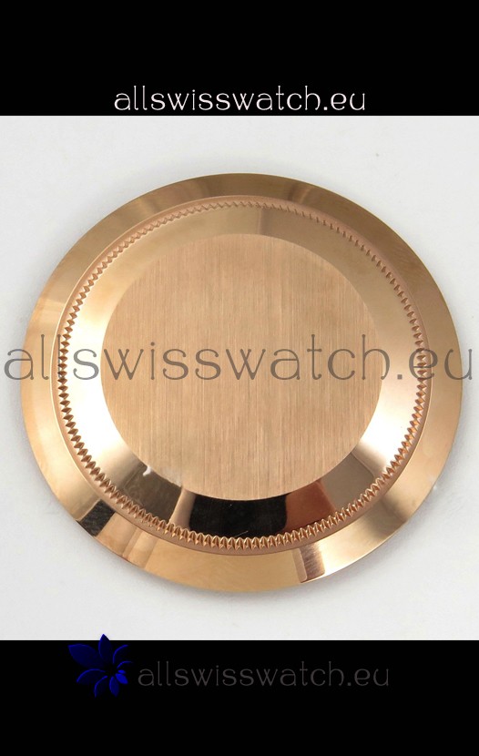 18K Rose Gold Plating on 904L Steel Case complete with all Rolex Markings and Engravings as per the Originals