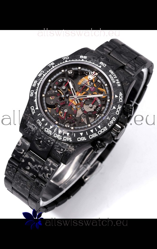 Rolex Daytona Blaken Black Carbon 1:1 Swiss Mirror Replica Skeleton Dial Cal.4130 Movement