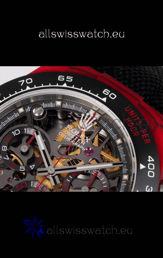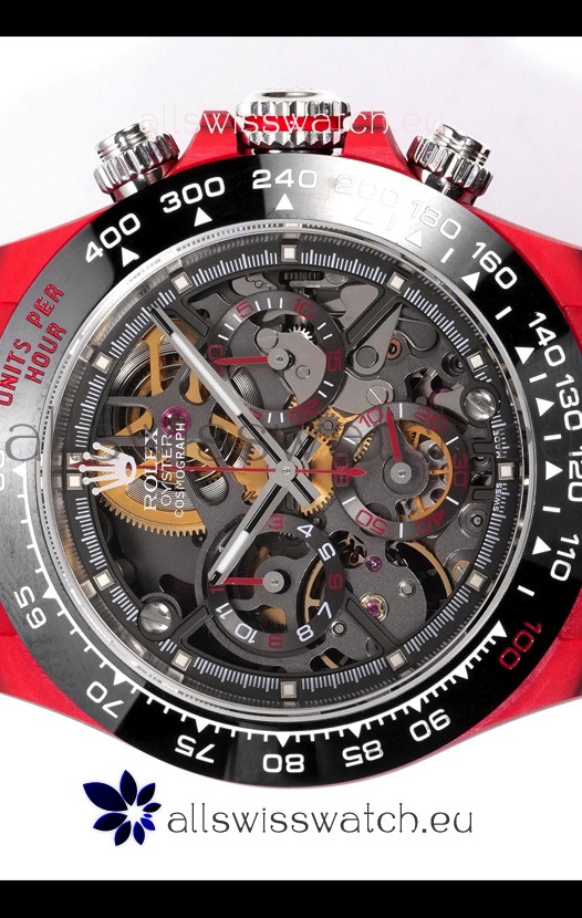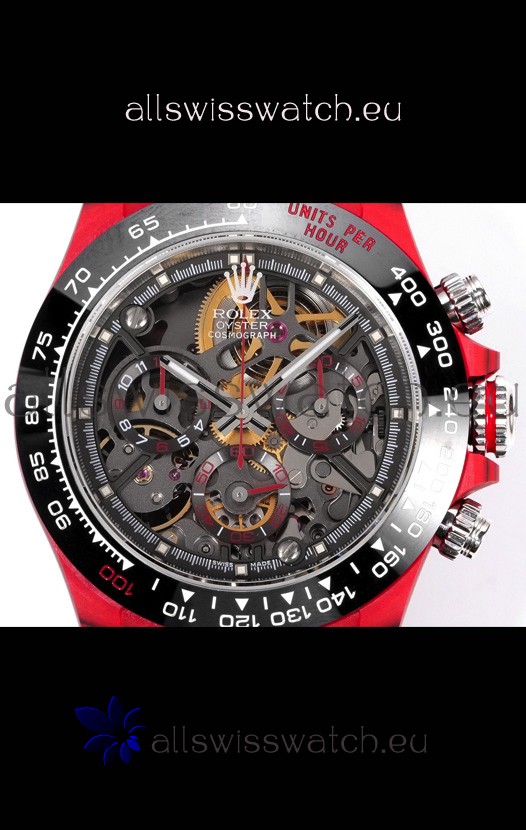 Rolex Daytona Blaken Red Carbon 1:1 Swiss Mirror Replica Skeleton Dial Cal.4130 Movement