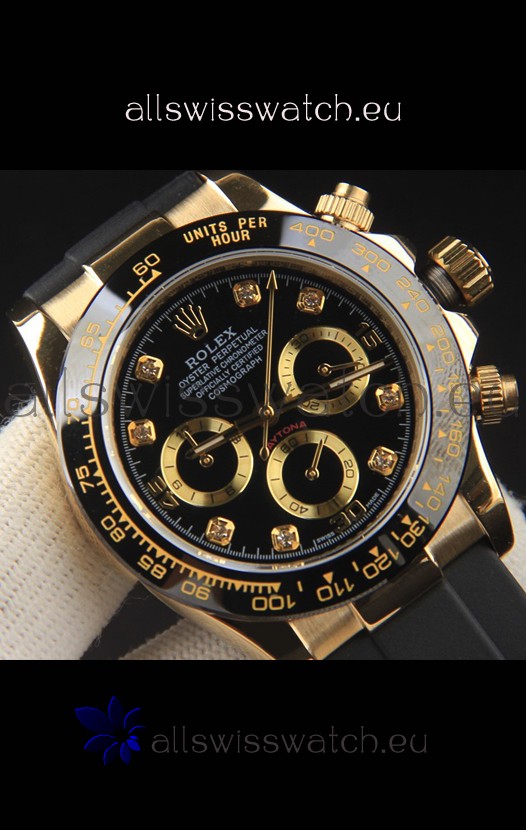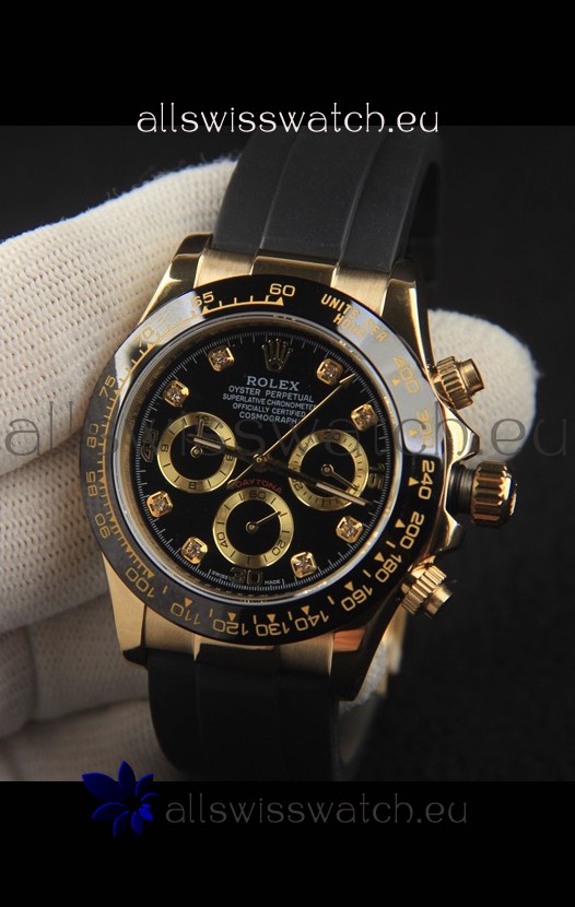 You're reviewing: Rolex Daytona Japanese Movement Gold Casing Replica Watch in Black Dial