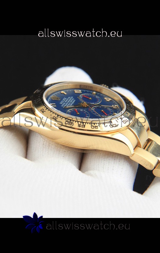 Rolex Daytona Japanese Movement Gold Casing Replica Watch in Blue Dial