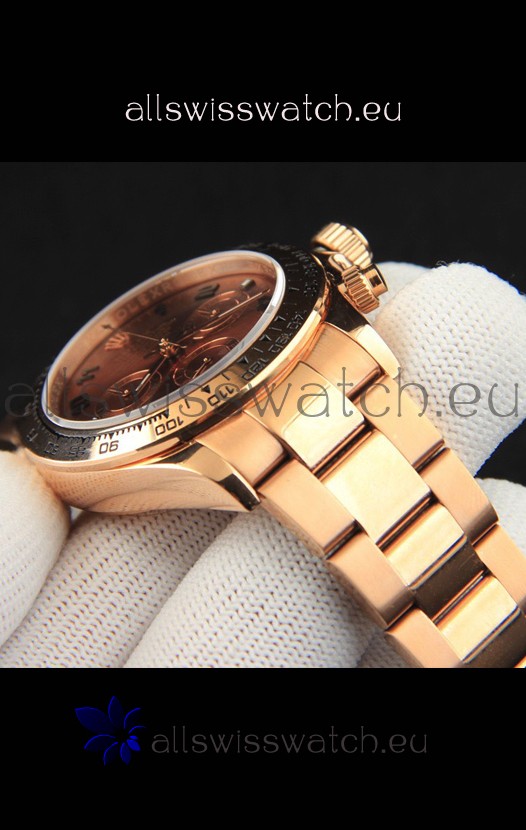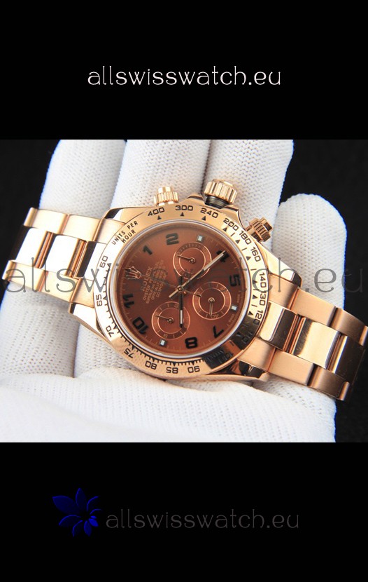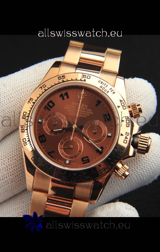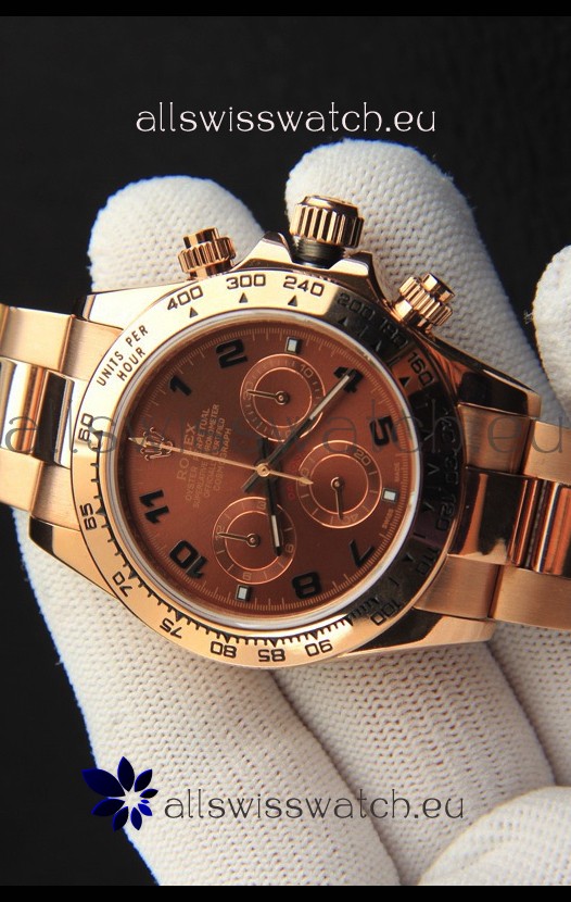Rolex Daytona Japanese Movement Gold Casing Replica Watch in Brown Dial