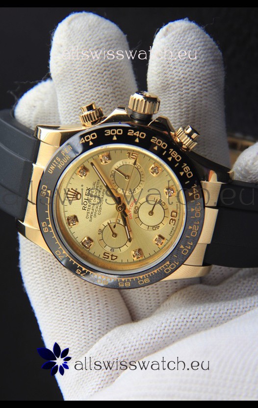 You're reviewing: Rolex Daytona Japanese Movement Gold Casing Replica Watch in Gold Dial