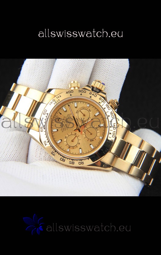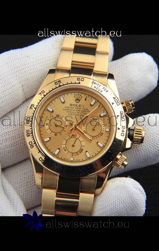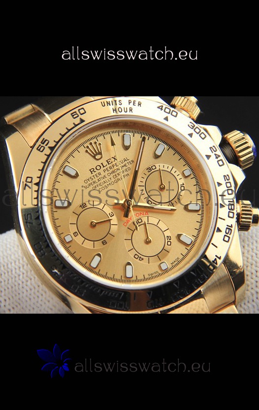 You're reviewing: Rolex Daytona Japanese Movement Gold Casing Replica Watch in Gold Dial
