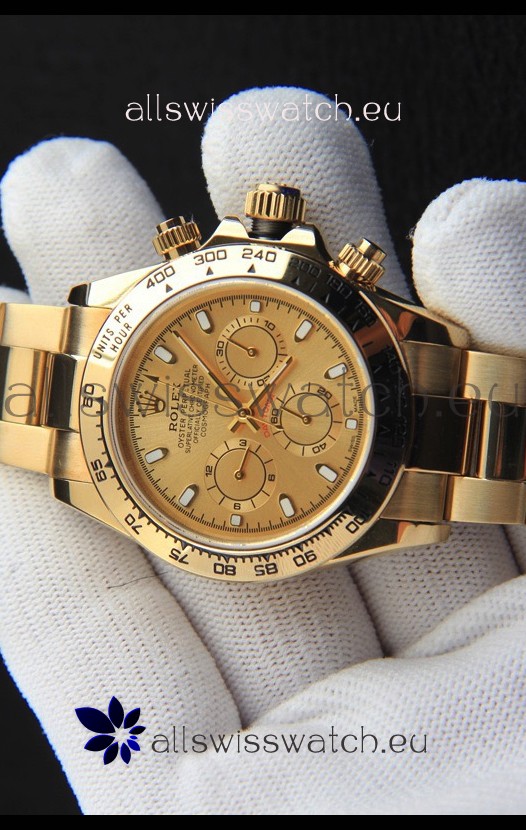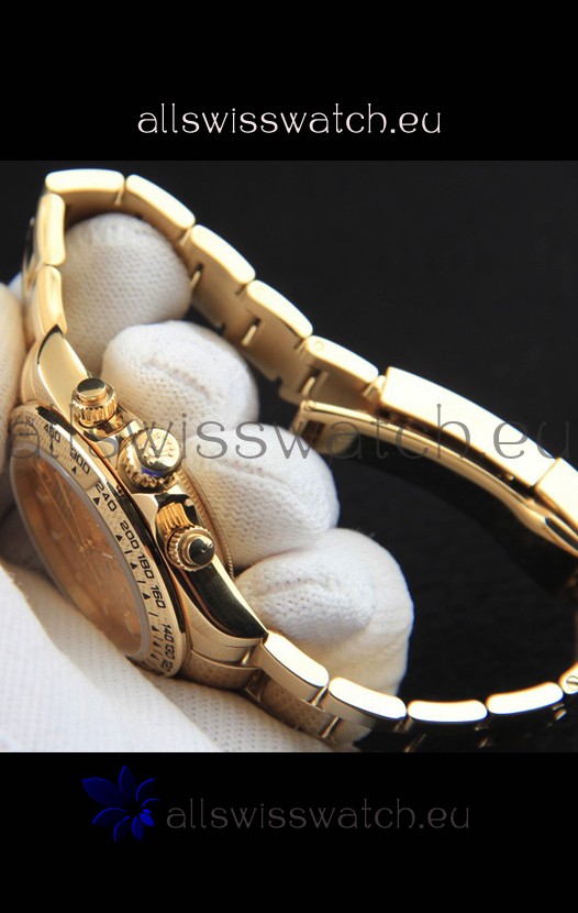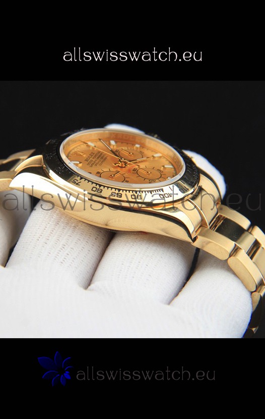 Rolex Daytona Japanese Movement Gold Casing Replica Watch in Gold Dial