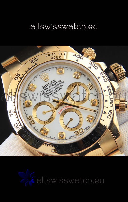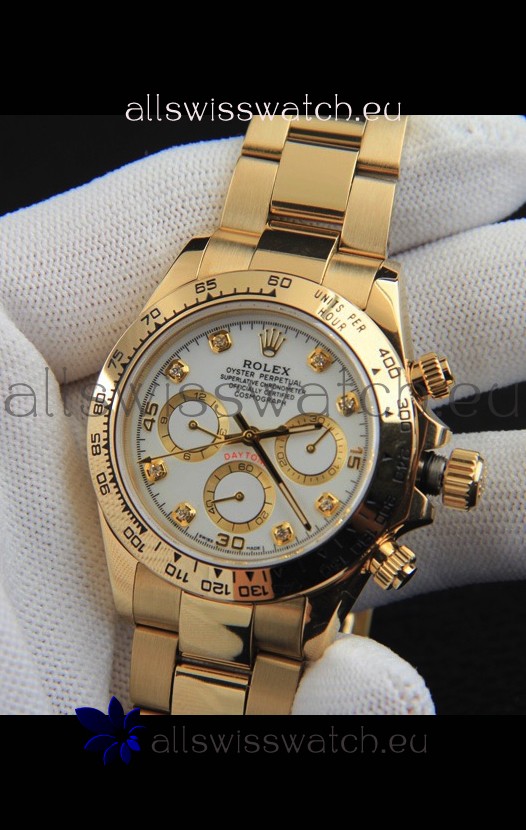 You're reviewing: Rolex Daytona Japanese Movement Gold Casing Replica Watch in White Dial