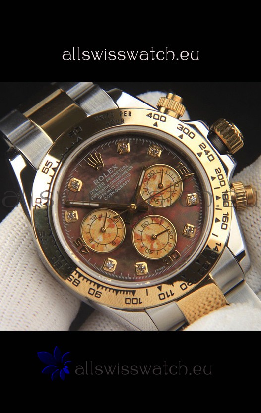 Rolex Daytona Japanese Movement Two Tone Gold Casing Watch in Pearl Dial