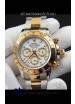 Rolex Daytona Japanese Movement Two Tone Gold Casing Watch in White Dial