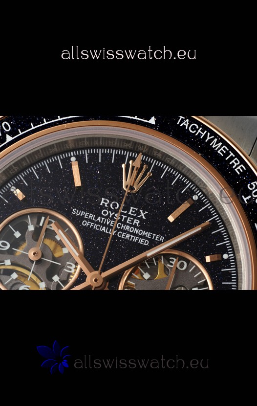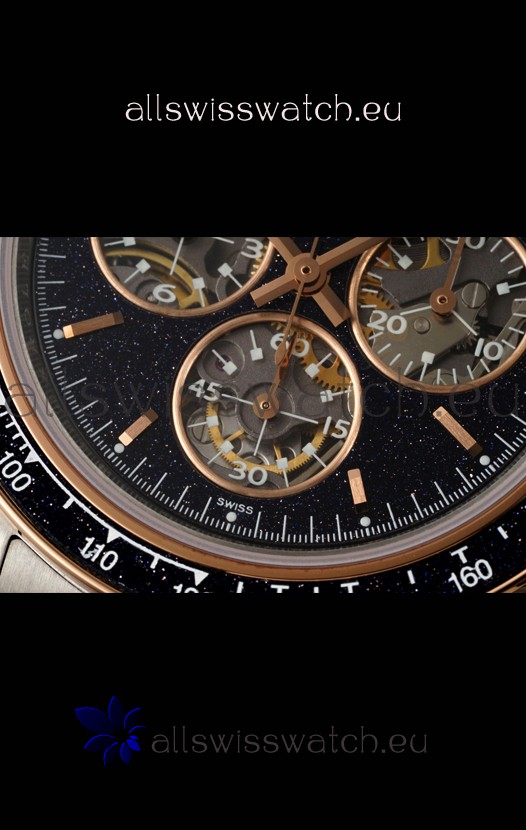 Genuine Cal.4130 Movement built from Scratch with no modifications, Platinum Plating on Rotors and Plates as per the original. The Same movement you find in Rolex Daytona Watches