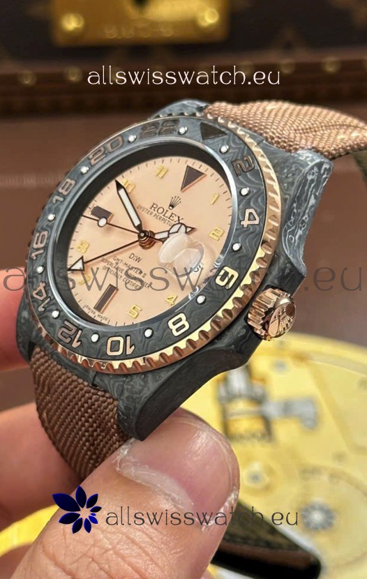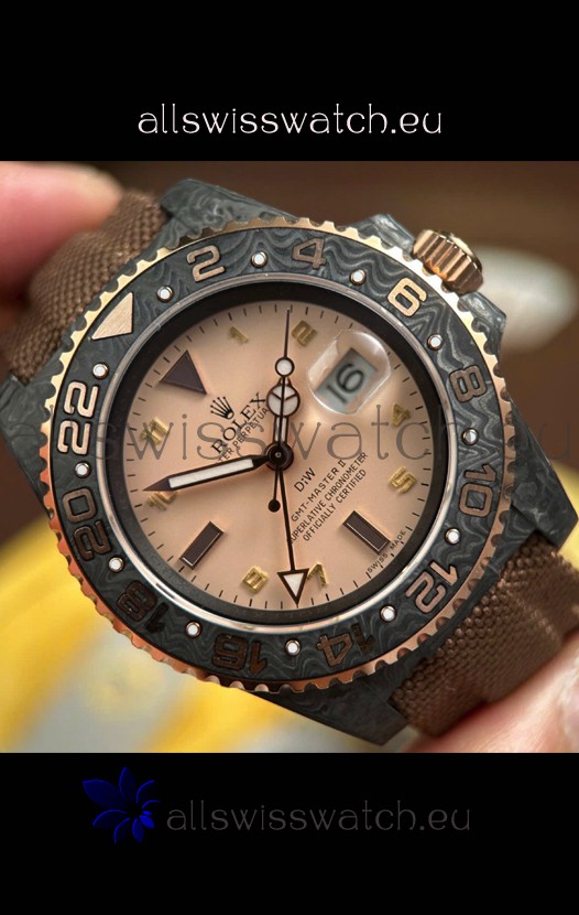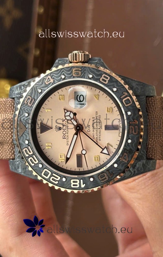 You're reviewing: Rolex GMT Masters DiW Black Carbon Casing Swiss Replica Watch Beige Gray Dial